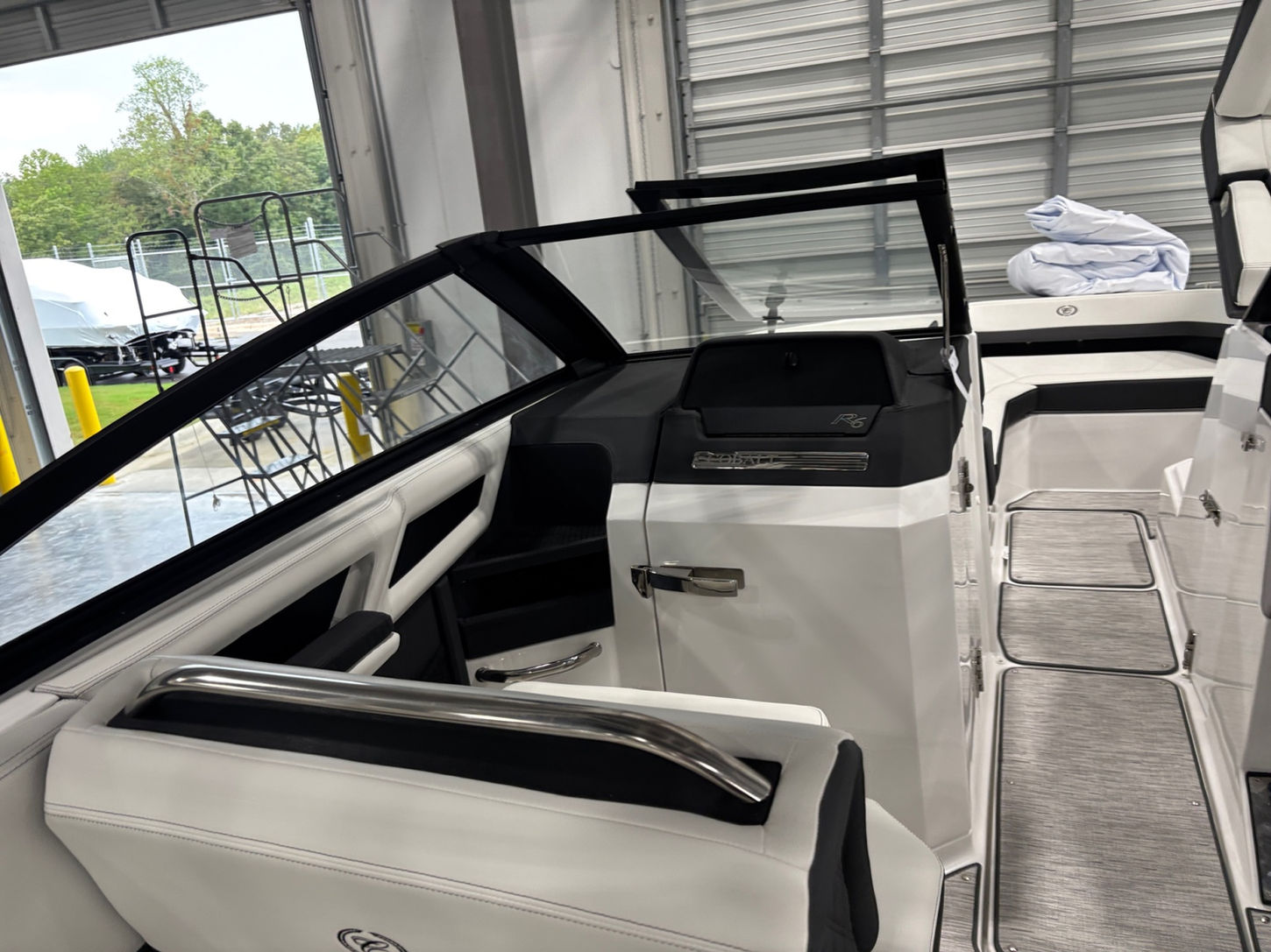 Swim Step: Patented Swim Step lowers below the waterline for easy access in and out of the water, is great for lounging, pets, and stows flush within the swim platform surface. Cobalt Boats