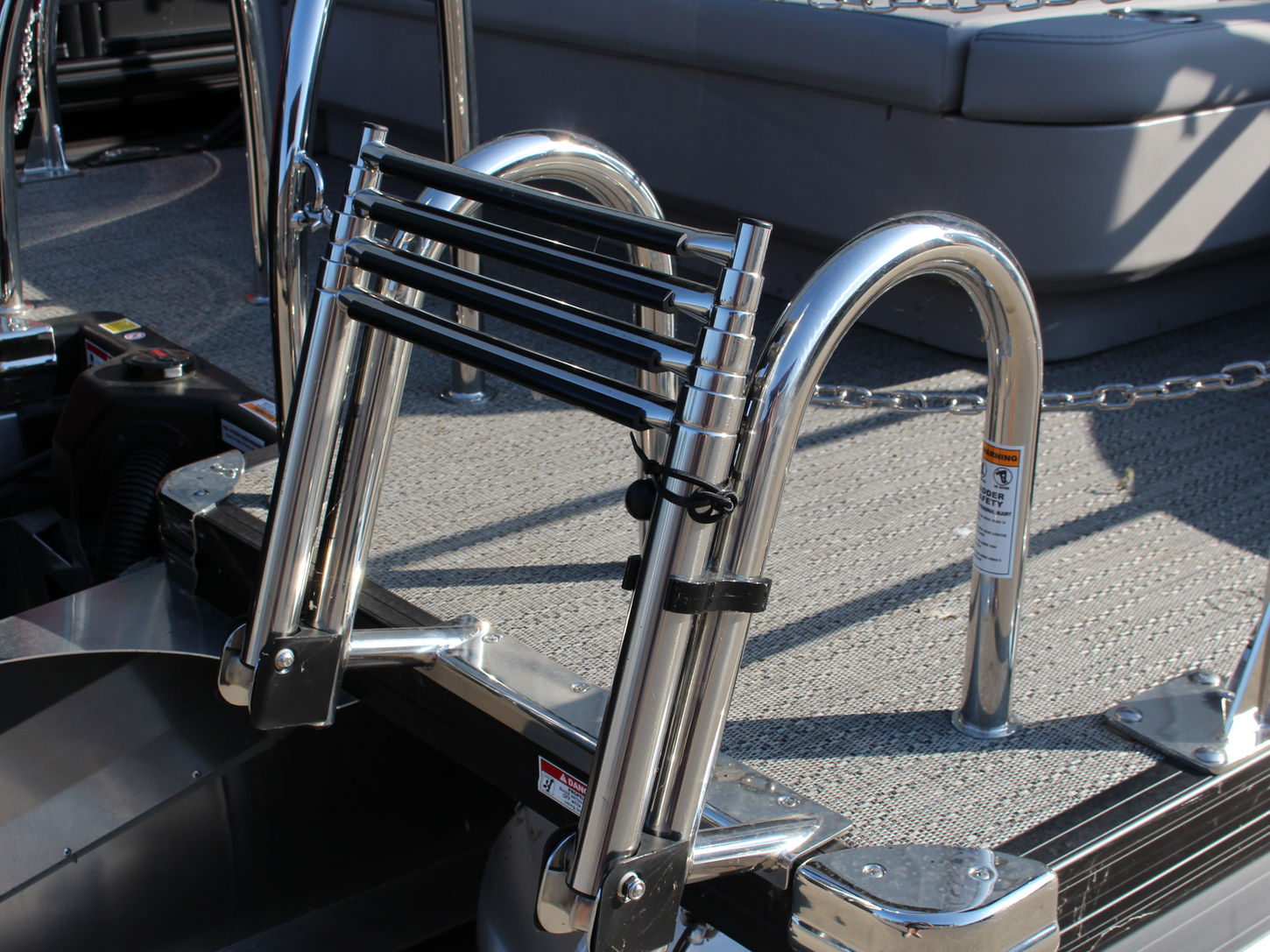 Extended Swim Deck - Spacious rear swim platform with stainless steel boarding ladder for easy water access.
