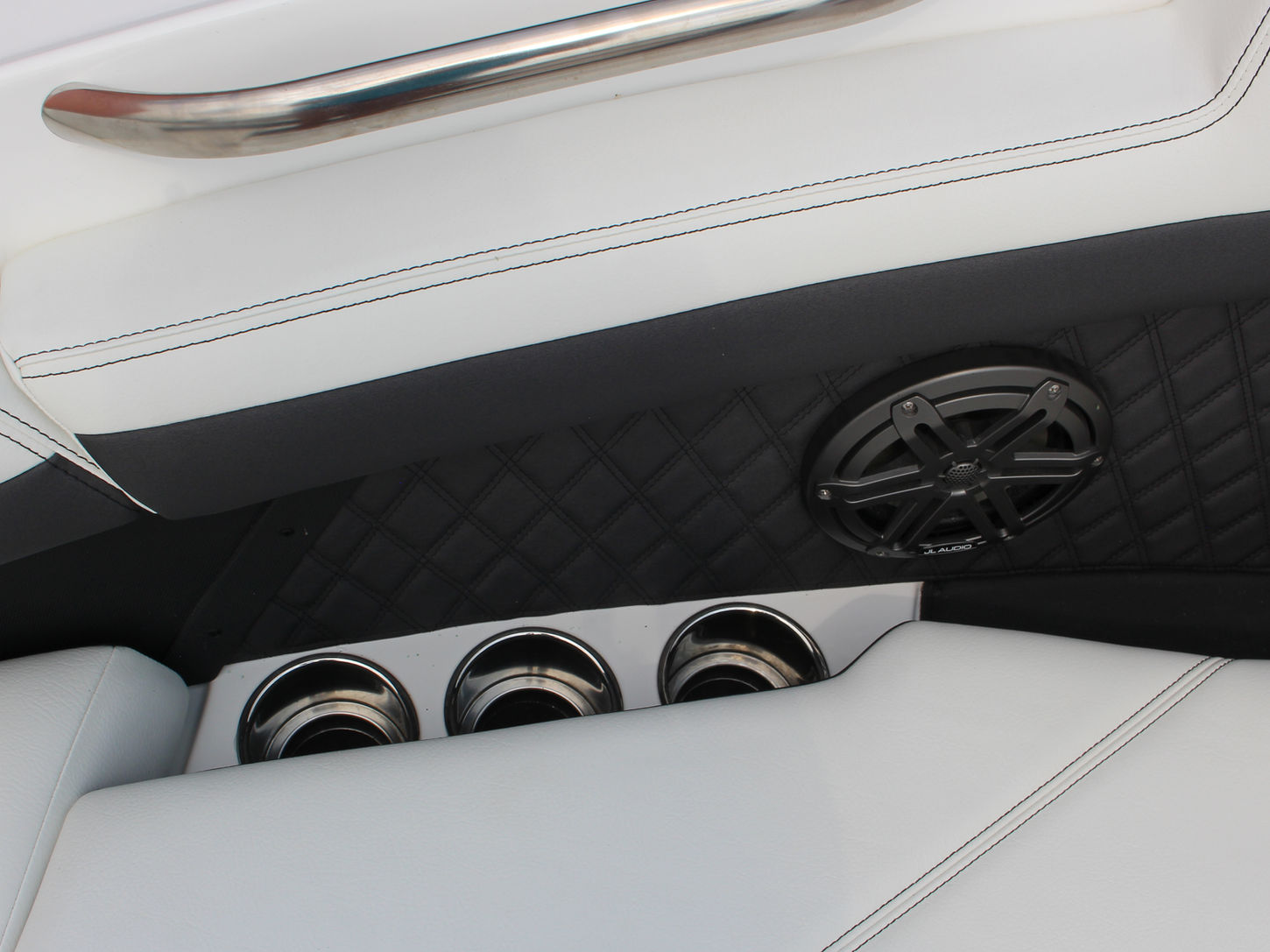 Optional upgrades available: Premium Sound with subwoofer, transom speakers, and extra remotes